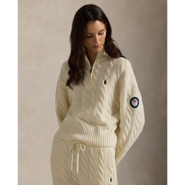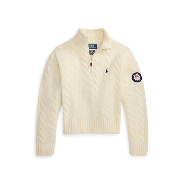 Polo Ralph Lauren Team USA Cable Wool-Cashmere Half-Zip - Authentic Cream