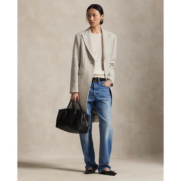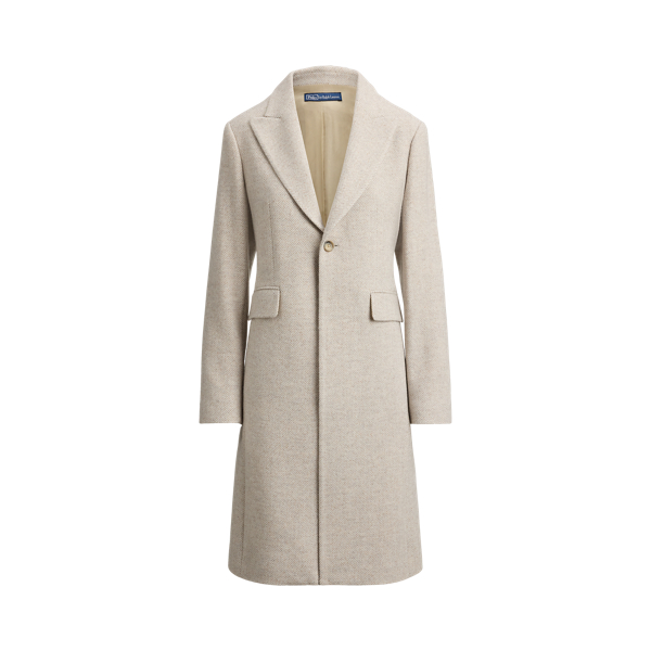 Polo Ralph Lauren Wool-Blend Herringbone Coat - Cream Grey Herringbone