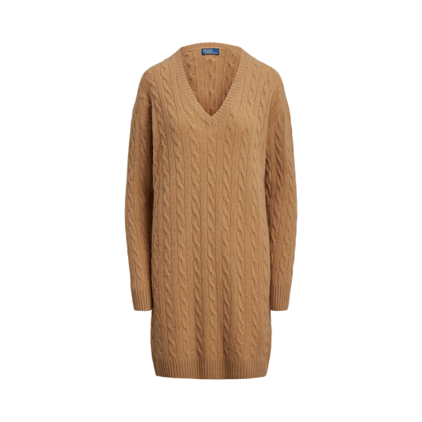 Polo Ralph Lauren Cable Wool-Cashmere V-Neck Sweater Dress - Collection Camel Melange