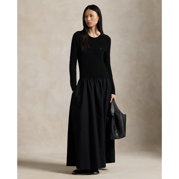 Polo Ralph Lauren Cable-Knit Poplin Dress - Polo Black