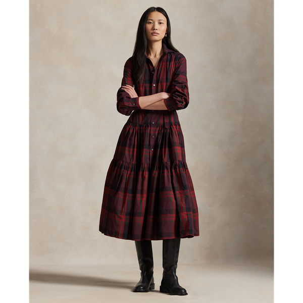 Polo Ralph Lauren Plaid Tiered Shirtdress - Red Multi Plaid