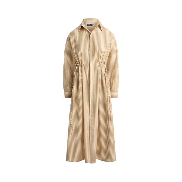 Polo Ralph Lauren Striped Cotton-Linen Drawcord Shirtdress - Classic Camel/White