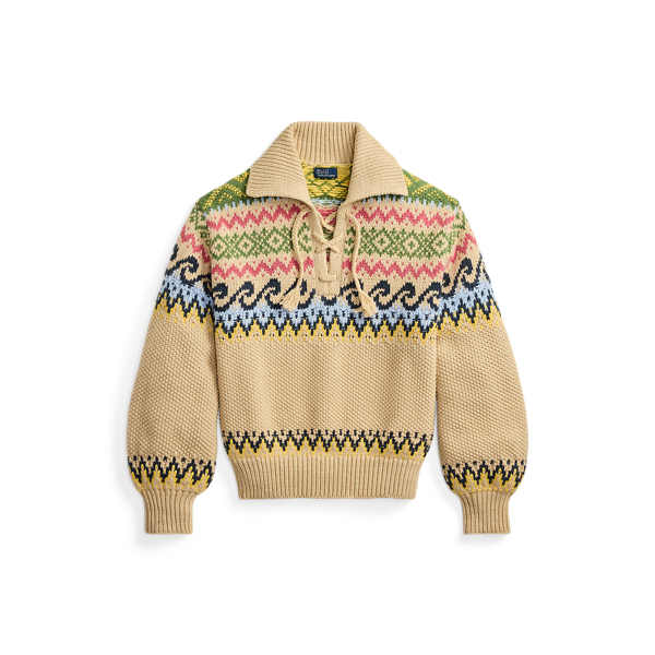 Polo Ralph Lauren Fair Isle Lace-Up Sweater - Tan Multi