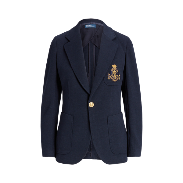 Polo Ralph Lauren Single-Breasted Logo-Crest Knit Blazer - Park Avenue Navy