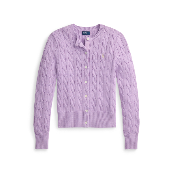 Polo Ralph Lauren Cable-Knit Cotton Crewneck Cardigan - Bright Aster