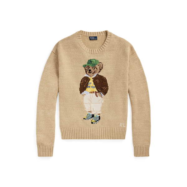 Polo Ralph Lauren Polo Bear Linen-Cotton Crewneck Sweater - Deckwash White Multi