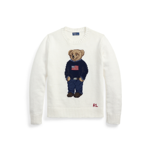 Polo Ralph Lauren Polo Bear Cotton Crewneck Sweater - Clubhouse Cream Multi