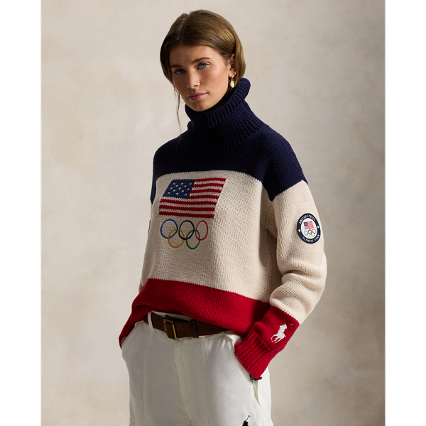 Polo Ralph Lauren Flag Wool-Blend Turtleneck Sweater - Natural Multi