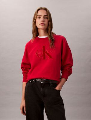 Calvin Klein Fleece Velvet Monologo Graphic Relaxed Sweatshirt