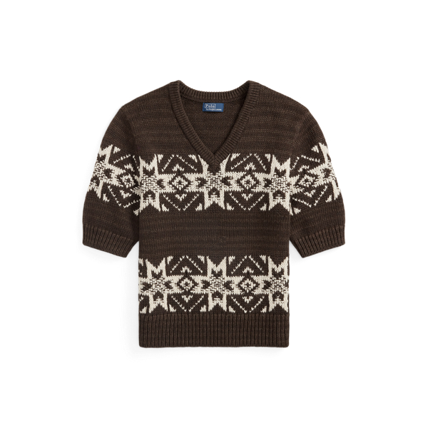 Polo Ralph Lauren Snowflake V-Neck Short-Sleeve Sweater - Brown Multi