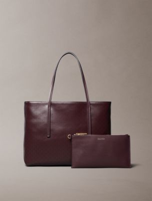 Calvin Klein Allover Emblem Logo Tote Bag with Pouch, Fudge Aop