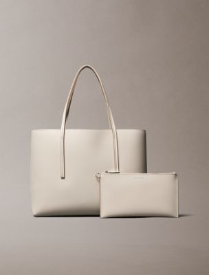 Calvin Klein Allover Emblem Logo Small Tote Bag with Pouch, Lily White Aop