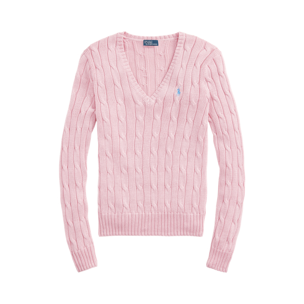 Polo Ralph Lauren Cable-Knit Cotton V-Neck Sweater - Carmel Pink